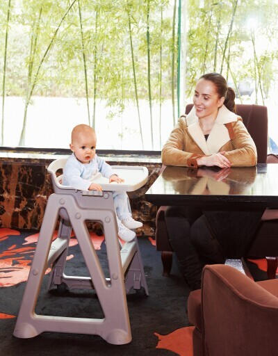 Bandeja para silla de niño construida con material de tecnología Microban® que ofrece protección contra el crecimiento de bacterias que ocasionan manchas y mal olor.