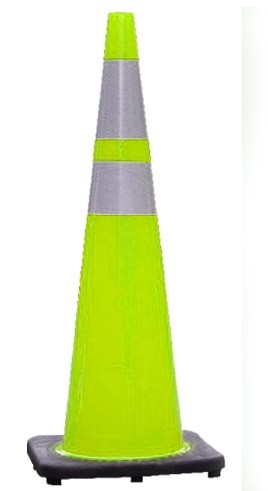 - SECS902VF: Cono Señalización Verde Fluor, 90 cm, 2 cintas reflectivas, Base de Caucho, 4,2 kg