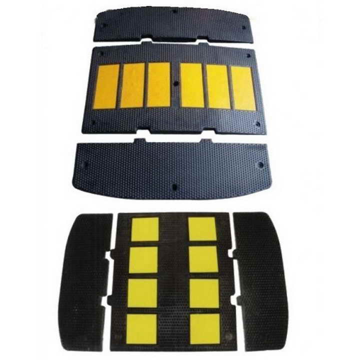 - Alta Visibilidad: Las franjas amarillas garantizan que el lomo de toro sea visible incluso en condiciones de baja luminosidad, mejorando la seguridad vial.